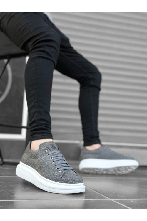 BOA Thick High Sole Gray Suede Lace-Up Sports Men's Shoes