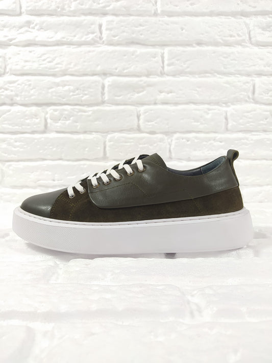 Genuine Leather Handmade Men Green Sneaker Shoes