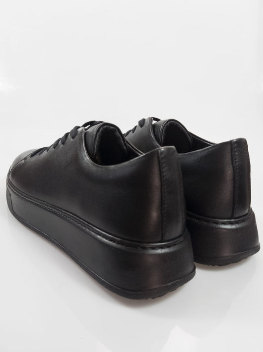 BLACK PRINTED GENUINE LEATHER MEN'S SNEAKERS