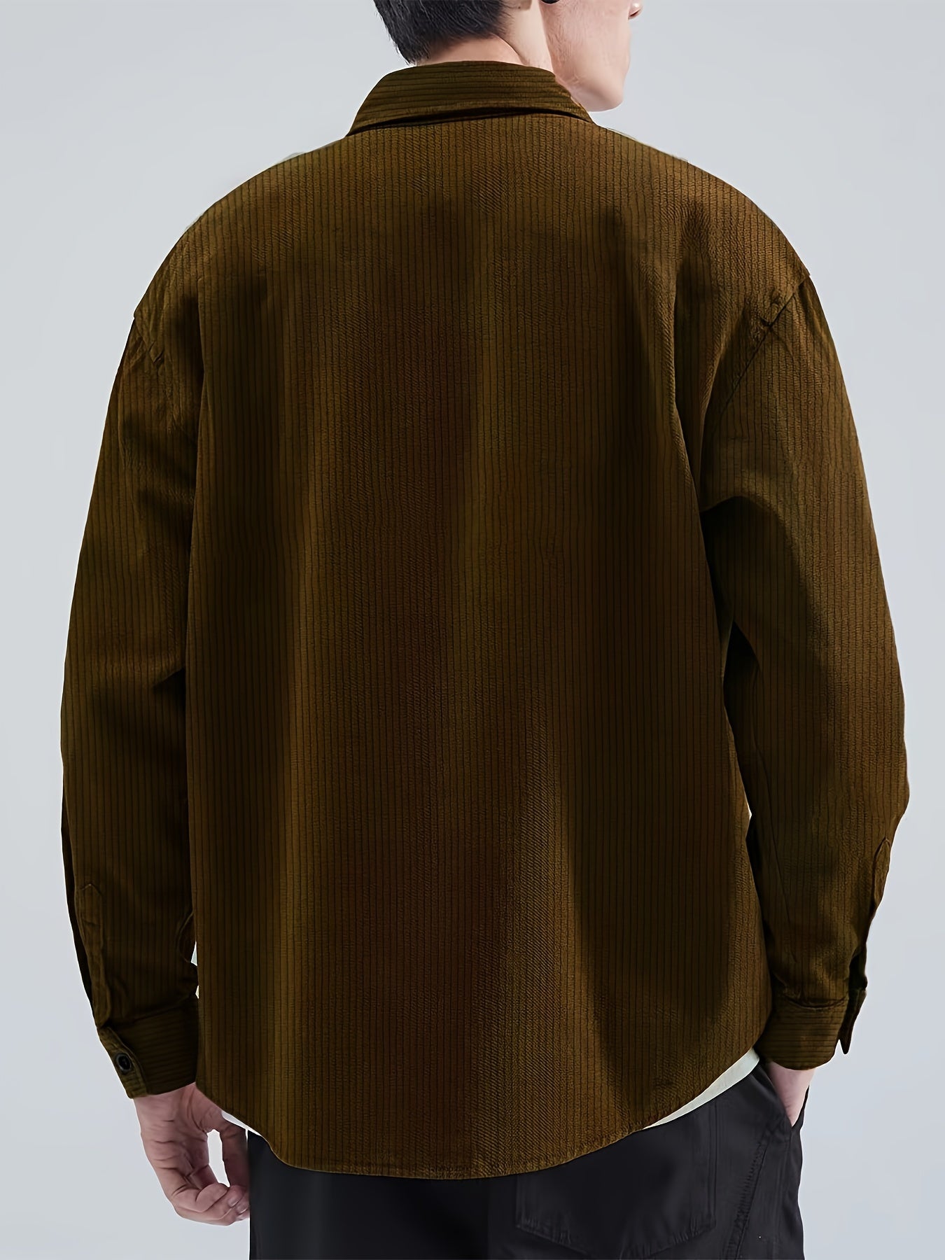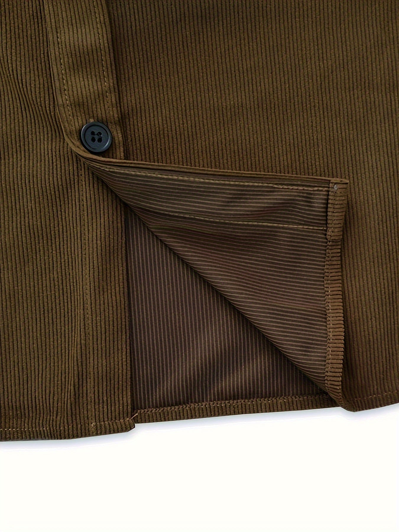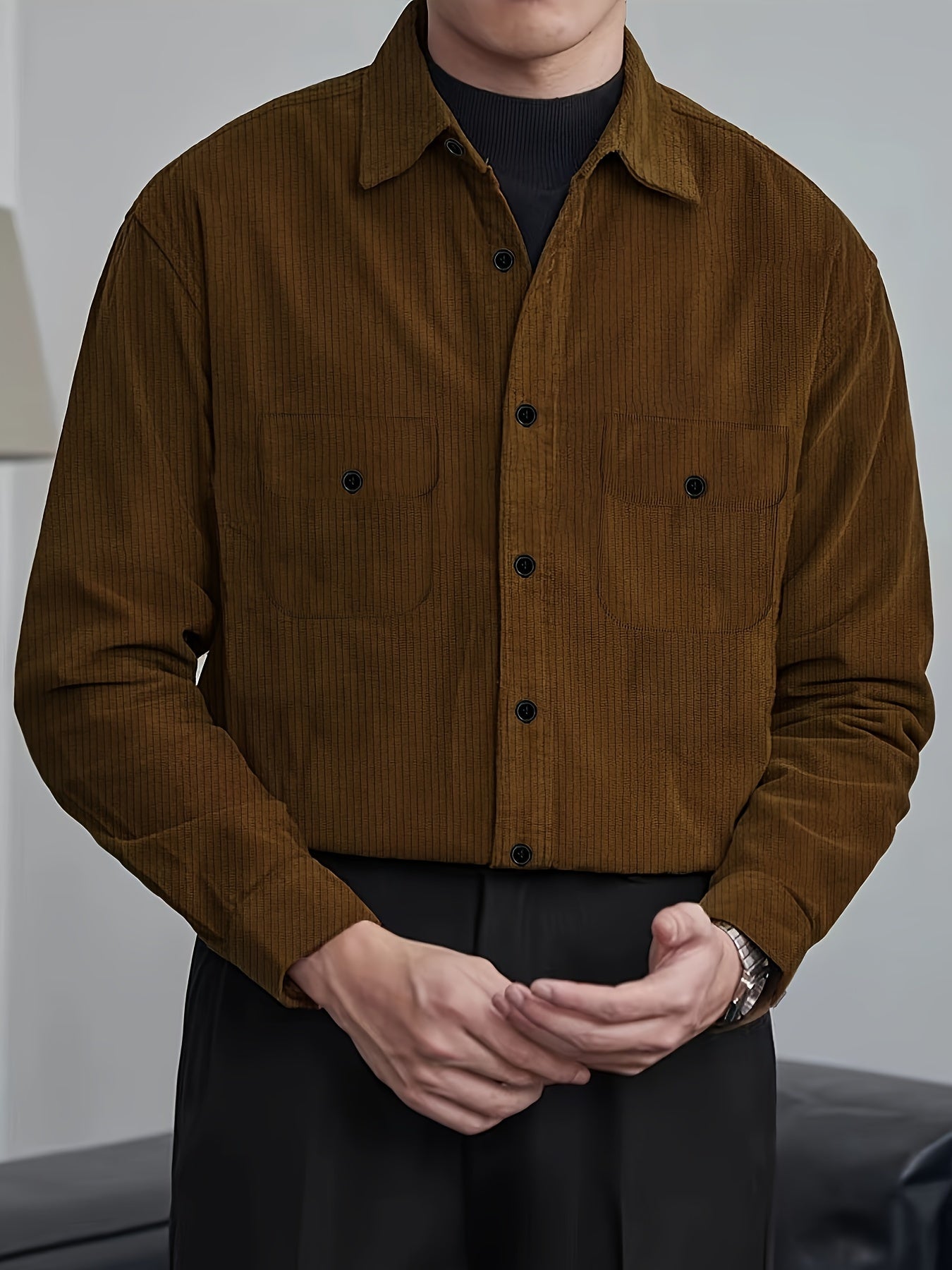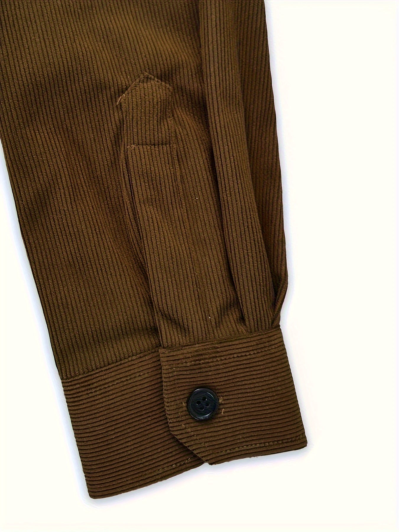Camisa de vestir de pana sólida para hombre, camisa de cuello de solapa de manga larga con bolsillos con solapa en el pecho, moda masculina de primavera y otoño